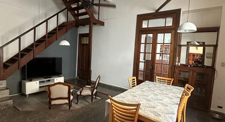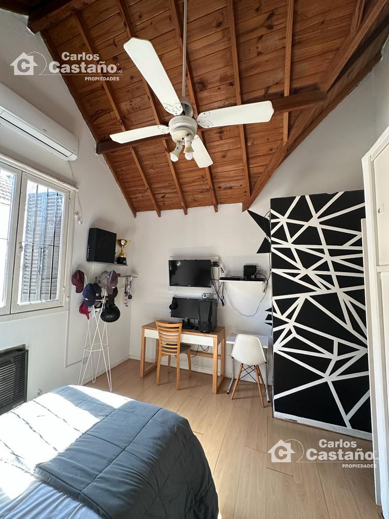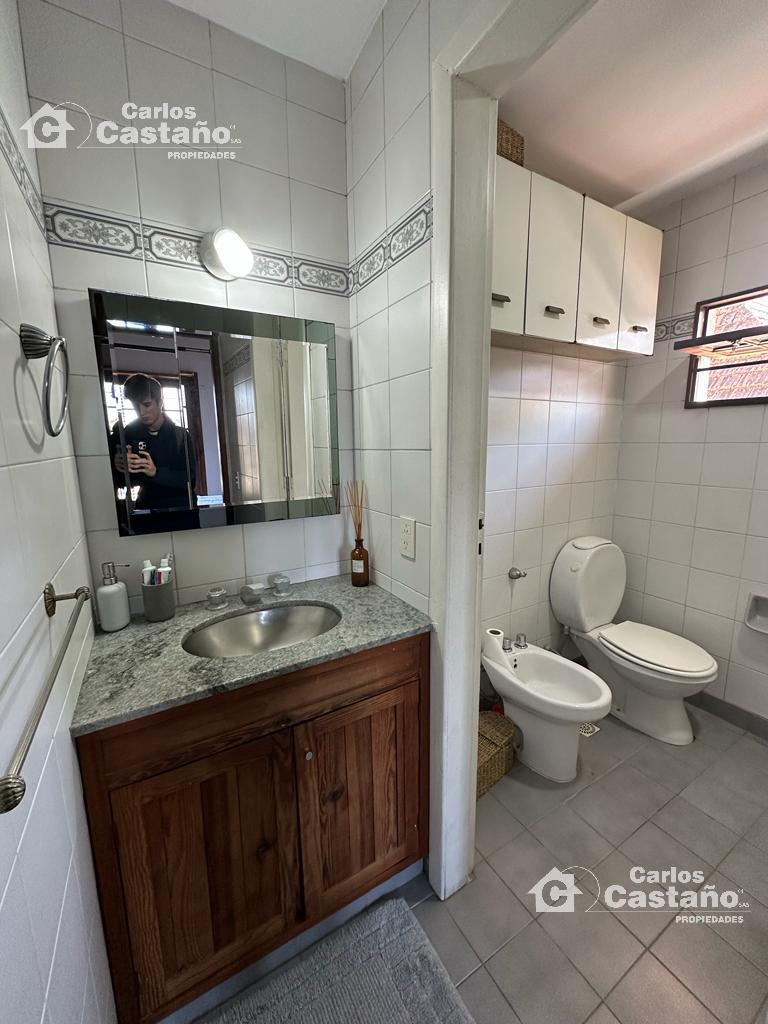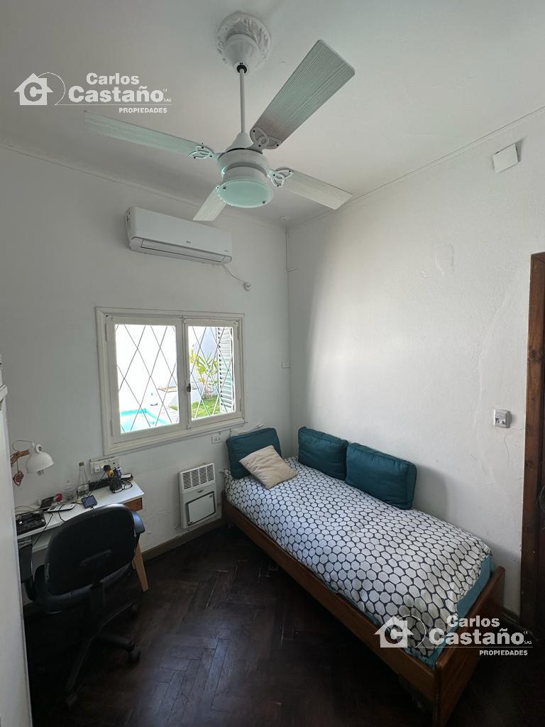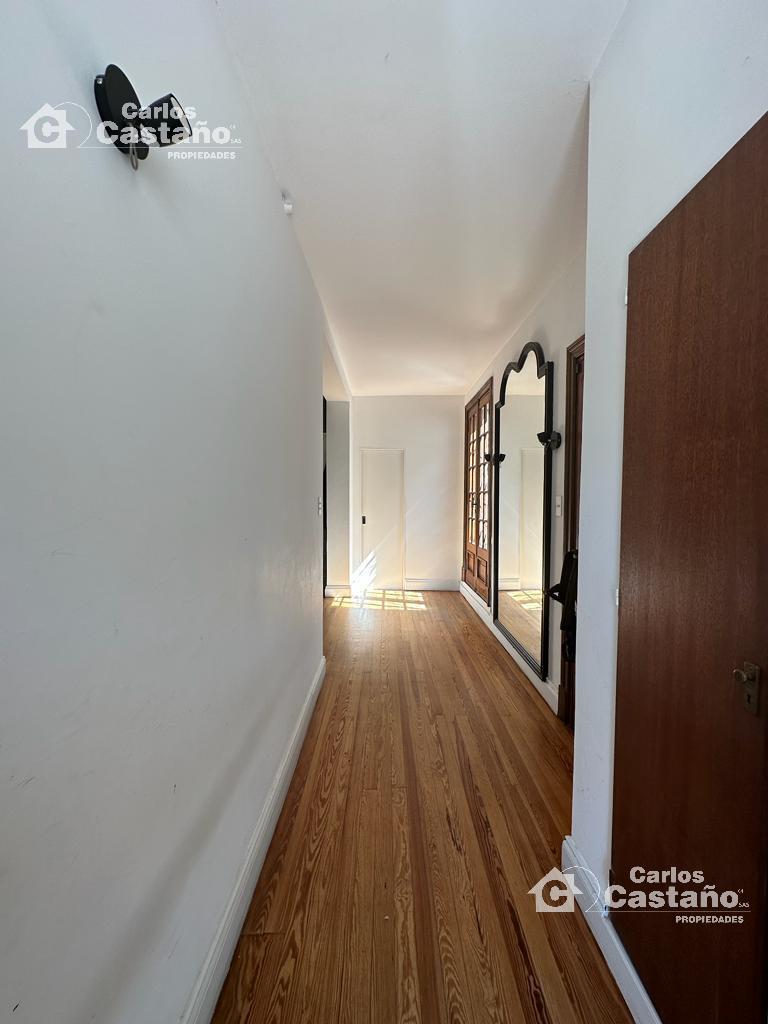 En planta alta: La Casa tiene 3 cómodos cuartos (con buenos placares), Suite al frente de 3,89×3,4m con Balcón, 2º Dorm. de 3,13×2,7m y 3º Dorm. de 4,07×3,19m + Baño compartimentado. Los cuartos tienen doble altura (techos de madera), ventiladores de techo, aires frio/calor; estufas de tiro balanceado, finas carpinterías de cedro, pisos de Mosaicos y pisos de Pinotea.