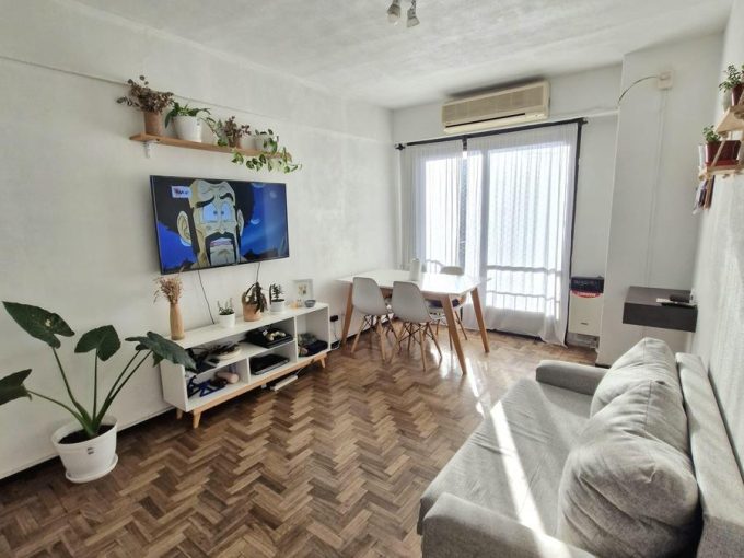 La propiedad cuenta con Living-Comedor de 6x3m sobre pisos flotantes y Cocina incorporada; 1 Dormitorios: 1º Dorm. de 3×2,9m; Baño; Toilette; Terraza; Lavadero incorporado; Cochera para 1 auto.