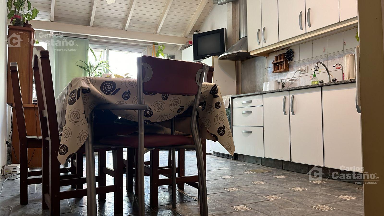 Exc. Dúplex con Cochera cubierta (5,2×3,25m); Porch de 1x1m; Living-Comedor de 7×3,25m sobre pisos de cerámica (estufa de tiro balanceado + aire acondicionado); Toilette; Cocina/Comedor con Lavadero (6×3,25m), muebles completos; fondo de 13×3,25m; Quincho de 5×3,25m o lugar de trabajo (separado de la Casa).