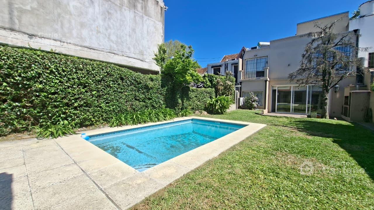 Exc. zona (cerca de Estación Florida M.), impecable Casa refaccionada hace 13 años. Exc. detalles de categoría y confort, retiro de frente con entrada para 3 autos (1 cubierto de 5,4×2,46m) con portón automatizado; Porch de 1,4×1,6m; amplia recepción con pisos de porcelanato símil madera; Living de 5,05×3,74m y 4m donde sale la escalera a la PA (toda en mármol Travertino); Comedor formal de 3,9x3m; Toilette de recepción (con bidet); Cocina de 3,9×2,65m con muebles de Cocina completos (lavavajillas, espacio) y gran Comedor Diario y Family-room vidriado al parque (6×3,45m, con aberturas doble vidrio); Lavadero + Escritorio de 2,5×2,7m; gran parque de 8,66x20m (con piscina), exc. pulmón de manzana, parrilla, Quincho de 5,36×2,95m; Play-room de 3,47×3,3m; Dependencia de Servicio. (EN EL FONDO LA CASA TIENE UN DEPARTAMENTO QUE PUEDE UTILIZARSE COMO DEP. DE SERVICIO Y/O PLAYROOM)