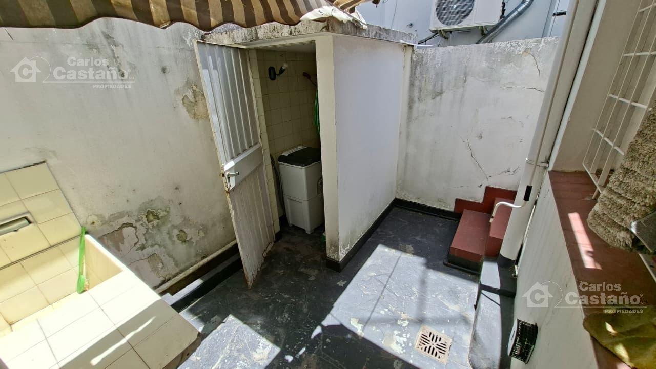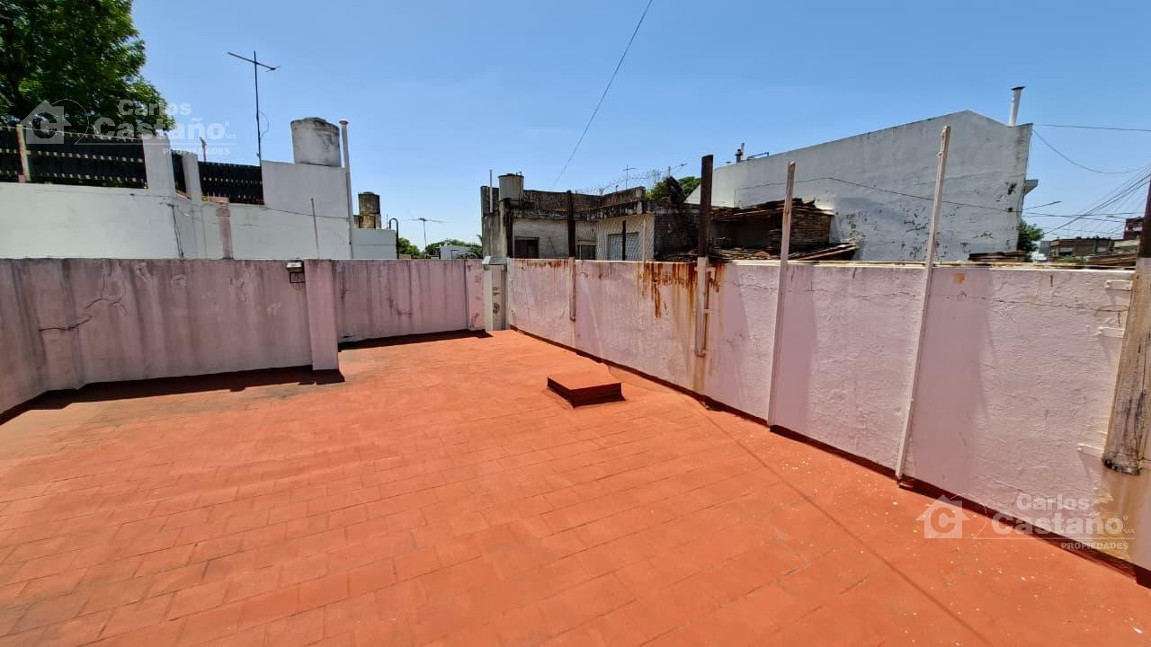 Hall de 3×2,5m; Living-Comedor de 3x5x3m; Dormitorio de 4×3,5m sobre pisos de cerámica; Baño; Cocina de 3×2,5m; Terraza de 8×3,5m; Patio de 2,5x2m con cuarto de herramientas.