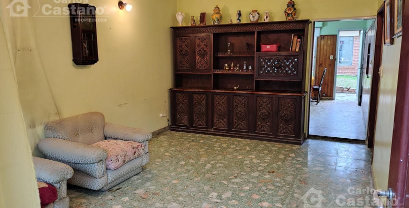 En la entrada gran Patio de 8,66×3,5m (tiene tanque de agua nuevo); Living-Comedor de 6×3,5m sobre pisos de mosaico; 2 cómodos cuartos con placares: 1º Dorm. de 4×3,6m con ventana al fondo y 2º Dorm. de 4,5×3,6m con ventana al Patio del frente; Baño; Hall de 0,9x2m; Cocina/Comedor de 5×3,5m salida al fondo propio de 8,66x8m (Patio y Jardín); en el fondo Dependencia de Servicio con Baño o puede ser cuarto de huéspedes; Lavadero; entrada pasante de servicio al fondo; Sótano en la Cocina.