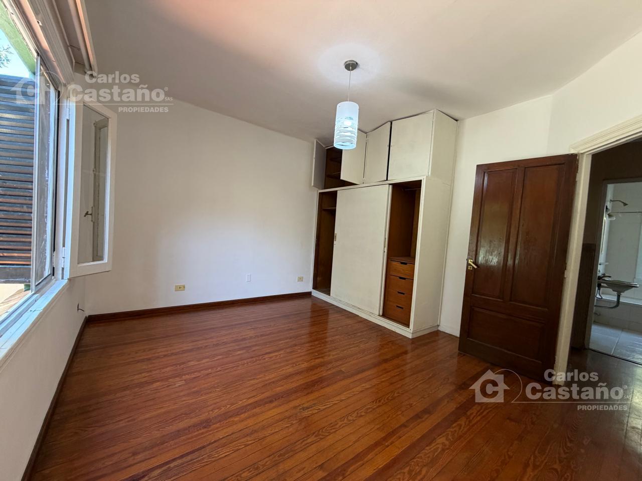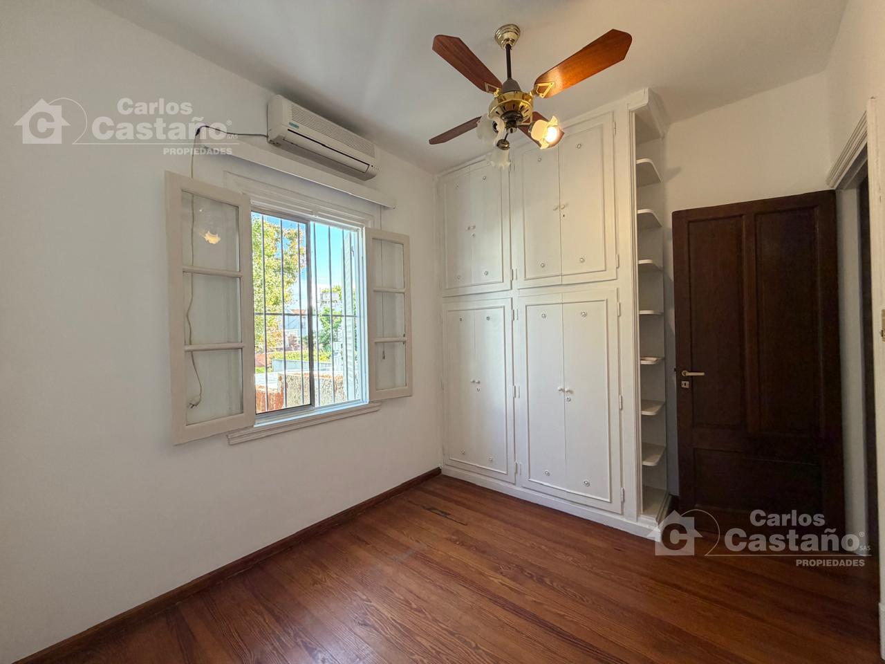 1er dormitorio de 3×3 con aire acondicionado en piso pinotea y placard.