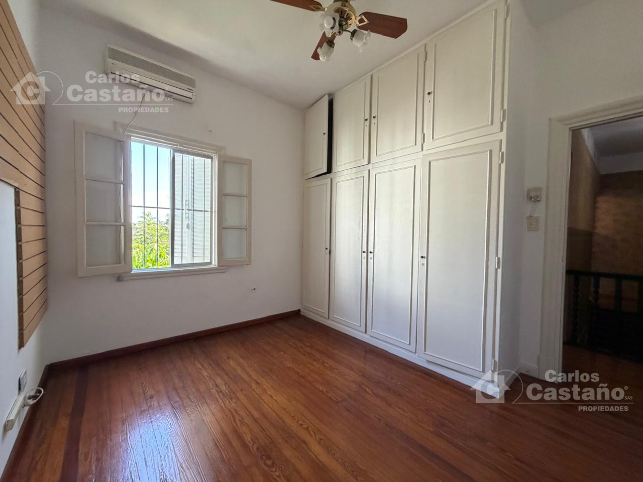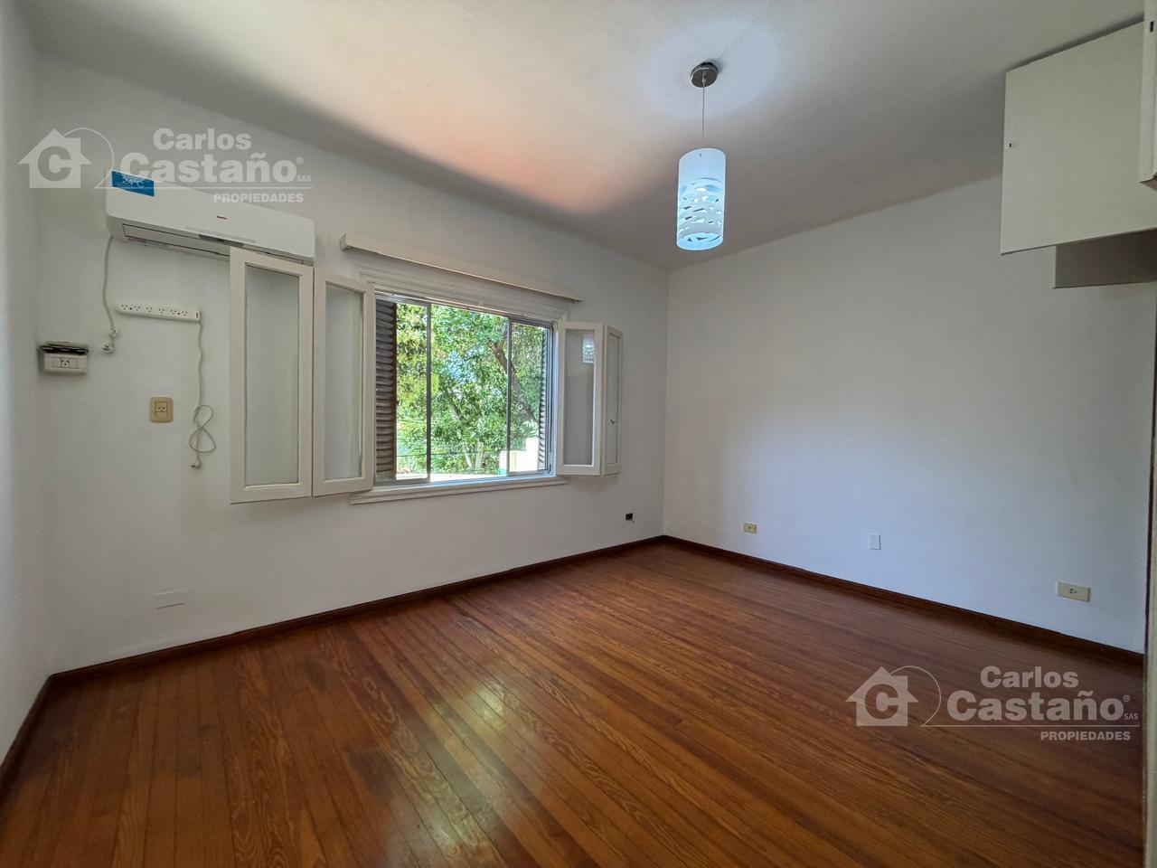 1er dormitorio de 3×3 con aire acondicionado en piso pinotea y placard.