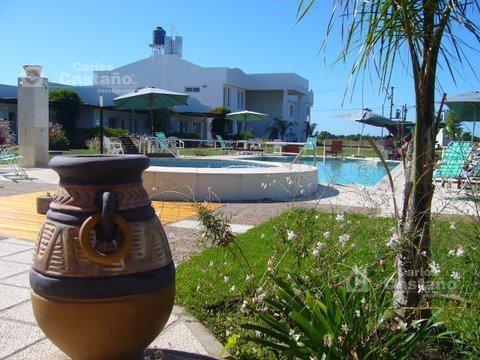 * Sup. cub.: 1.500 Mts2 – Terreno: 6.690 Mts2. * SIN COMISIÓN NI HONORARIOS DEL LADO DEL COMPRADOR * Excelente complejo para la salud y el descanso. * Posibilidad de expansión con mas unidades. * Actualmente Hotel (PB + 1er. piso) y Aparts (todo en PB). * HOTEL: 20 confortables y modernas habitaciones, dobles y triples, con frigobar y aire acondicionado individual. * APARTS: 12 amplios Dtos. de 2 ambientes completamente equipados para 3 personas (anafe, microondas, frigobar, vajilla), caja de seguridad, aacc individual y ventiladores de techo. * Oficina de recepción y administración. * Cómoda vivienda de encargado. 2 termotanques de alta recuperación. * Piscina. * Vestuarios. * Parque con pinos. * TV por cable. * Wi-Fi. * Solárium. * Estacionamiento. * Quincho con parrillas. * 40% contado y saldo financiado.