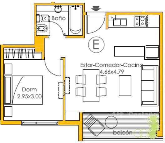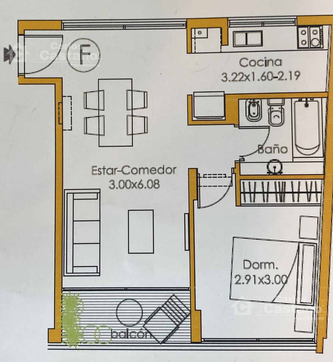 La propiedad cuenta con Living-Comedor de 3×6,08m con aire acondicionado (salida a Balcón); 1 Dormitorios de 2,91x3m con Placar y sus interiores, sobre pisos Flotantes + aire acondicionado; Cocina abierta de 3,22×2 con anafe y horno eléctrico, mesada de silestone; Baño; Balcón al contrafrente; Cochera descubierta adicional en USD 25.000