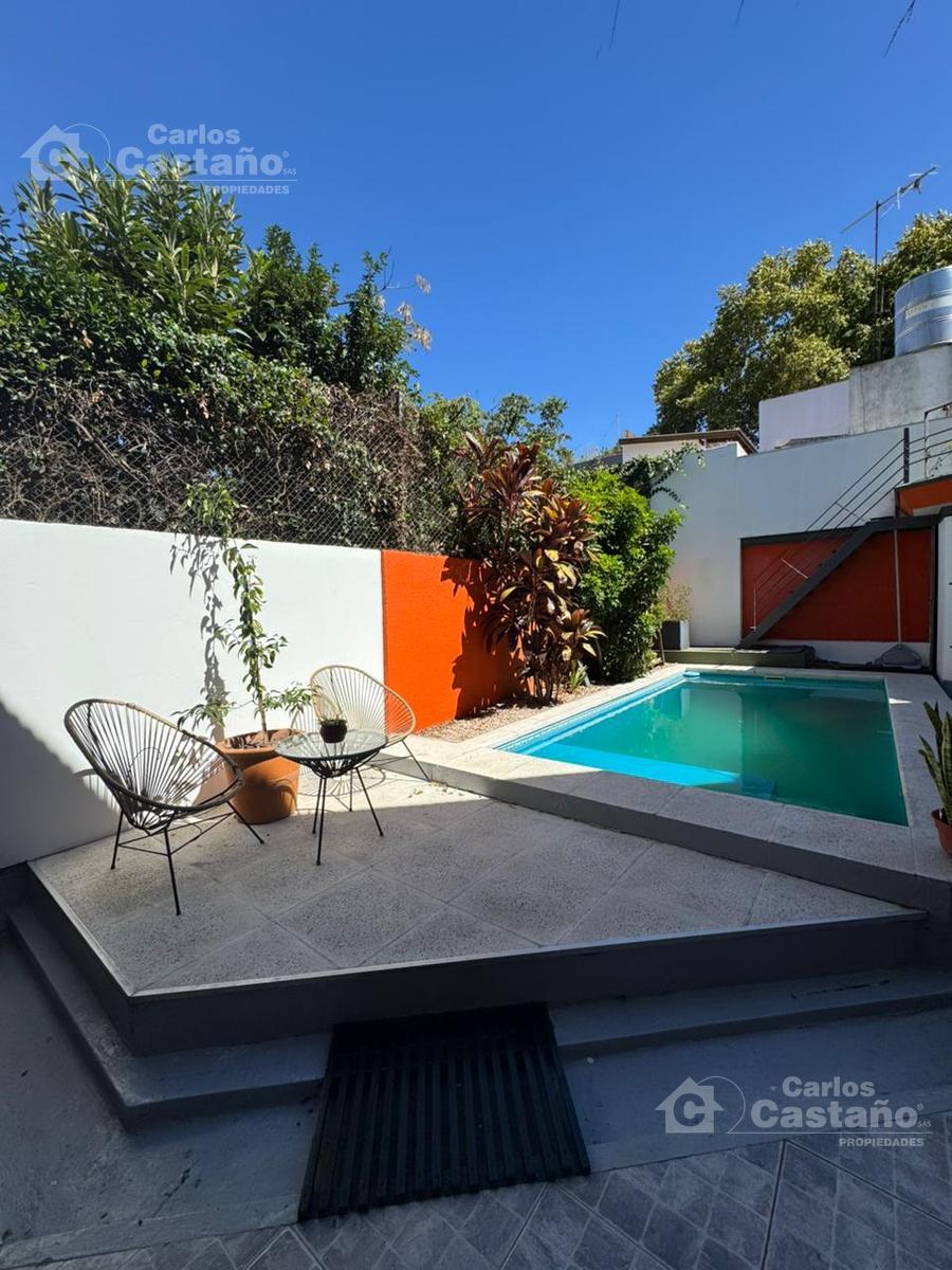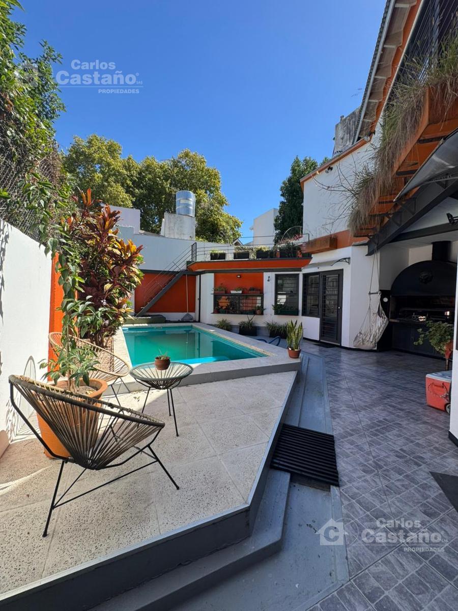 Exterior y Amenities:* Fondo: Jardín de 10×8 metros.* Piscina: De 5×3 metros con sistema de filtro.* Quincho: De 11m2 con parrilla a gas instalada.