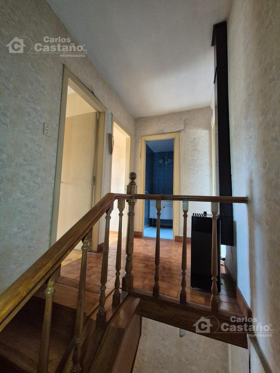 PA: Hall; Baño completo; 3 cuartos con placares y pisos en madera: Principal de 5×3,2m y 2 cuartos al frente de 3,25x3m (con Balcón de 6x1m).